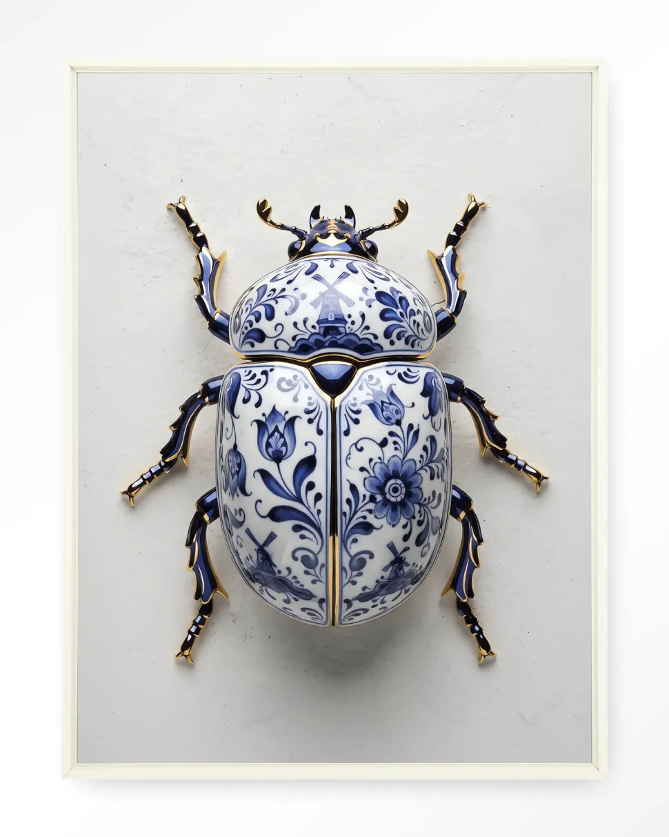 Wandkleed Blue Beatle in maat en frame naar keuze