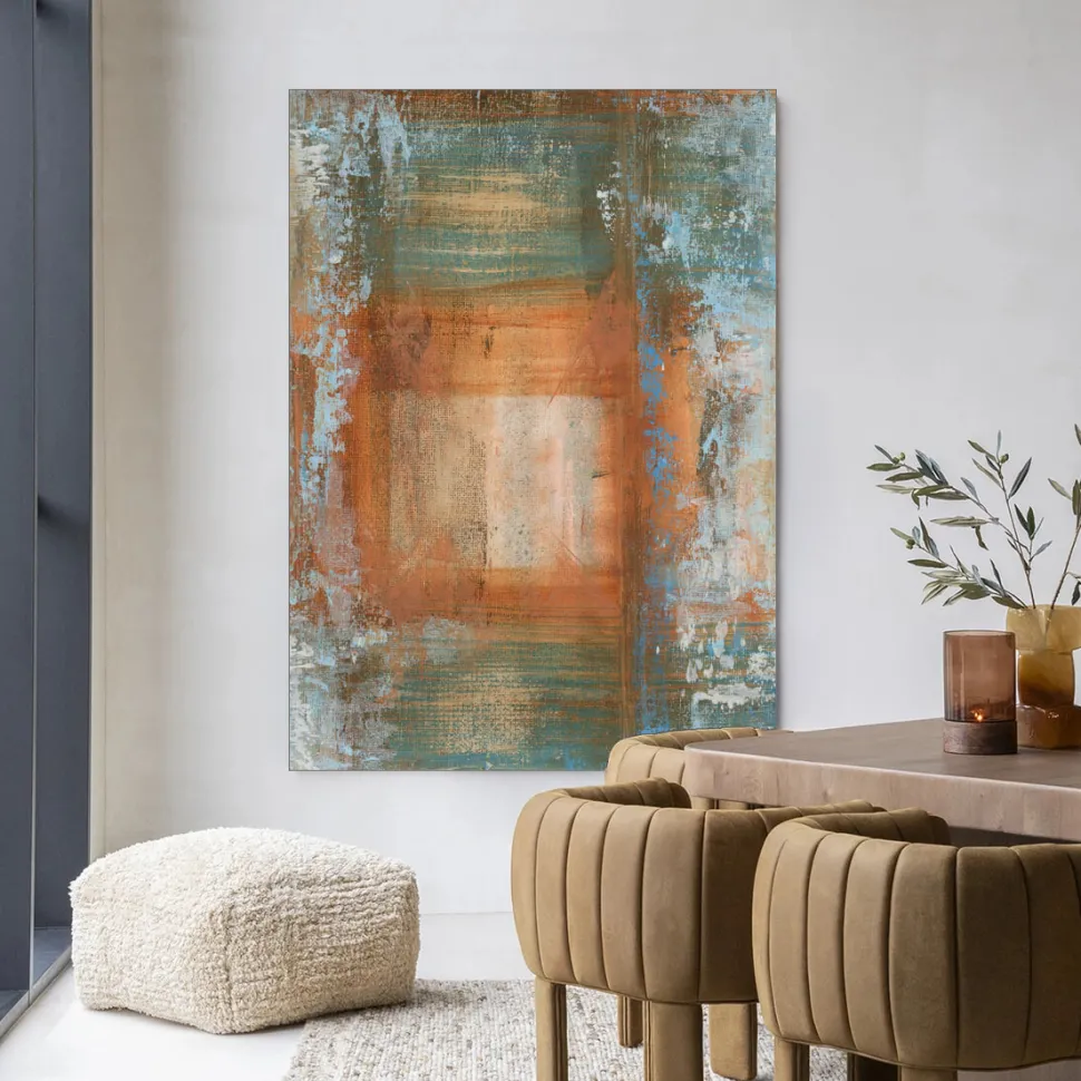 Wandkleed Blue Ocker Abstract 1 in maat en frame naar keuze
