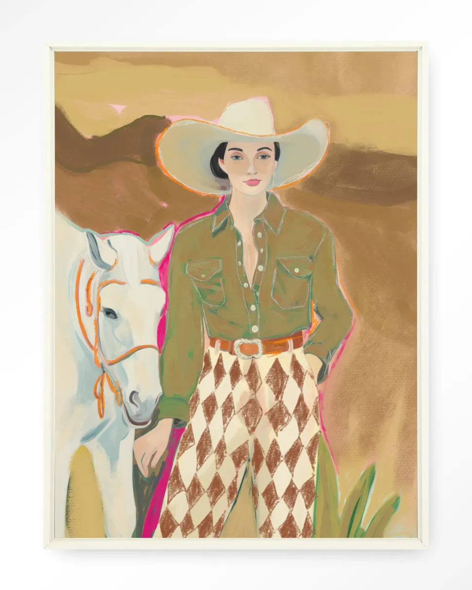 Wandkleed Cowgirl 3 in maat en frame naar keuze