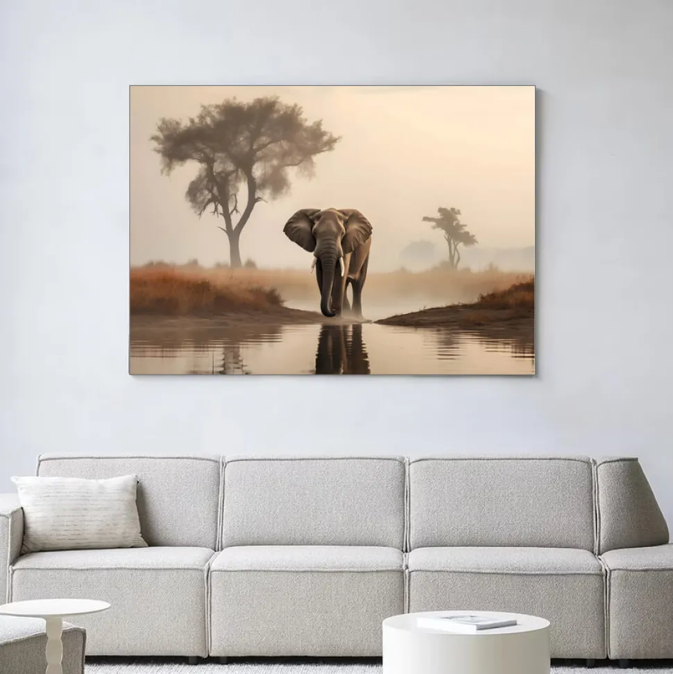 Wandkleed Savannah Elephant in maat en frame naar keuze