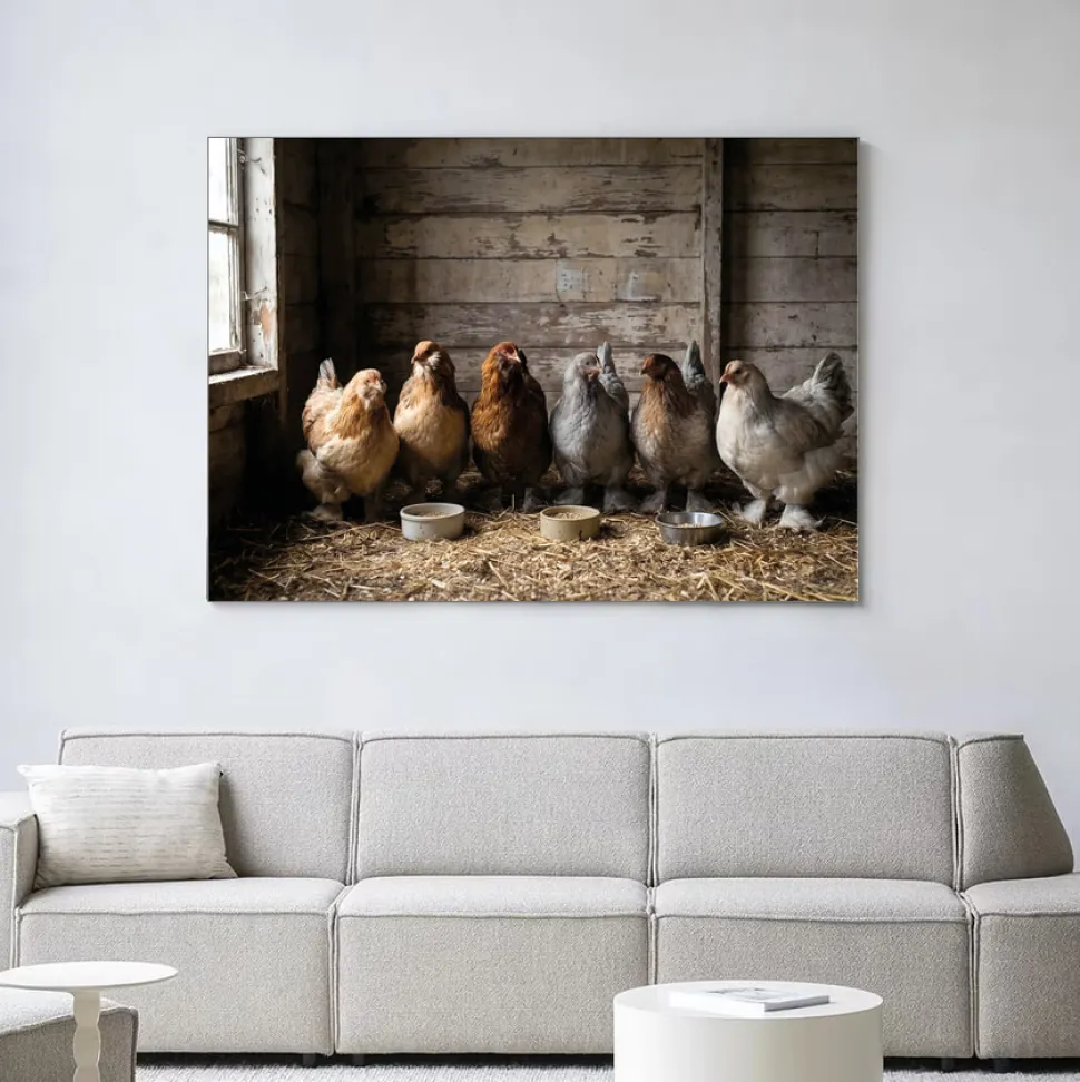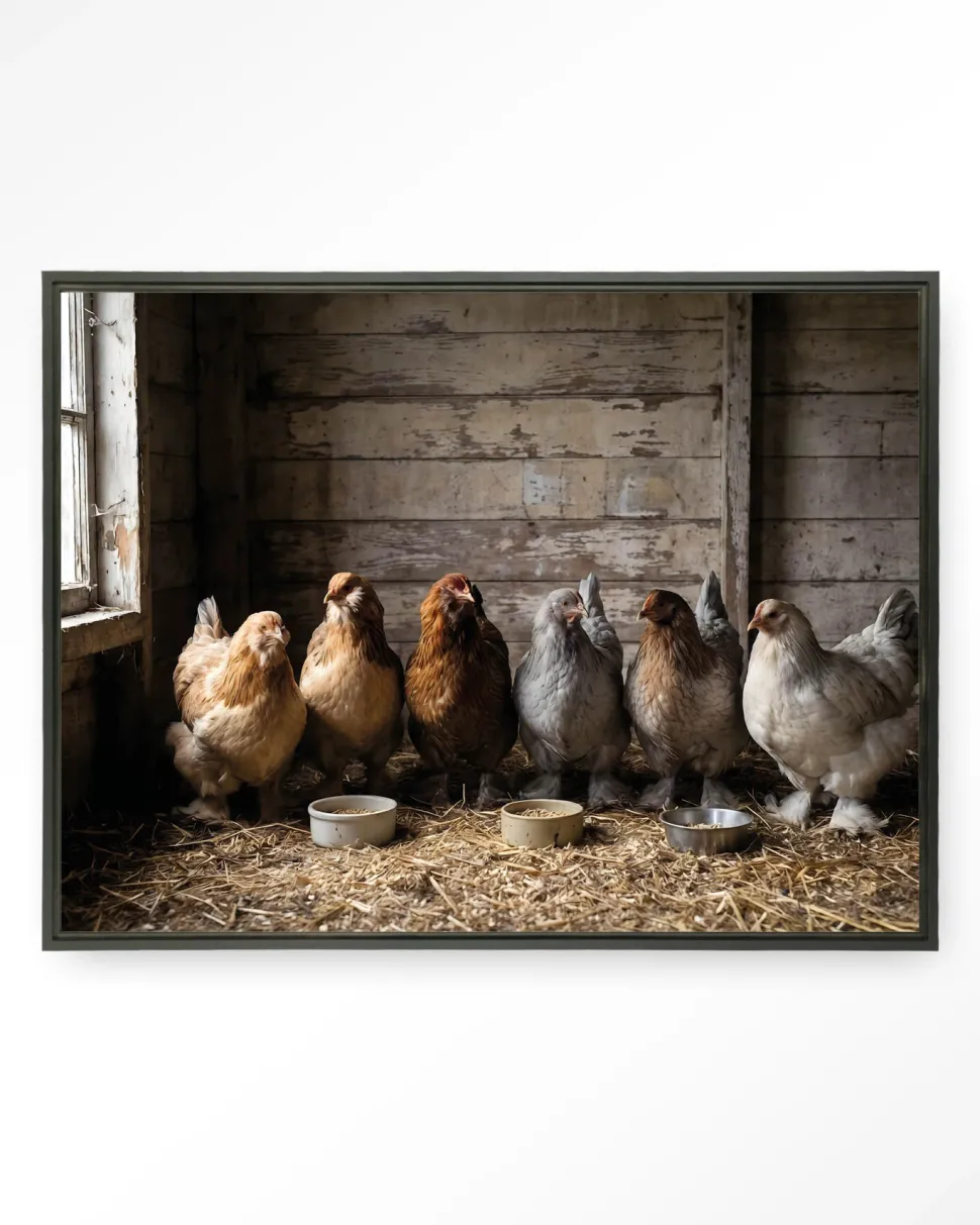 Wandkleed The Chicken Barn in maat en frame naar keuze