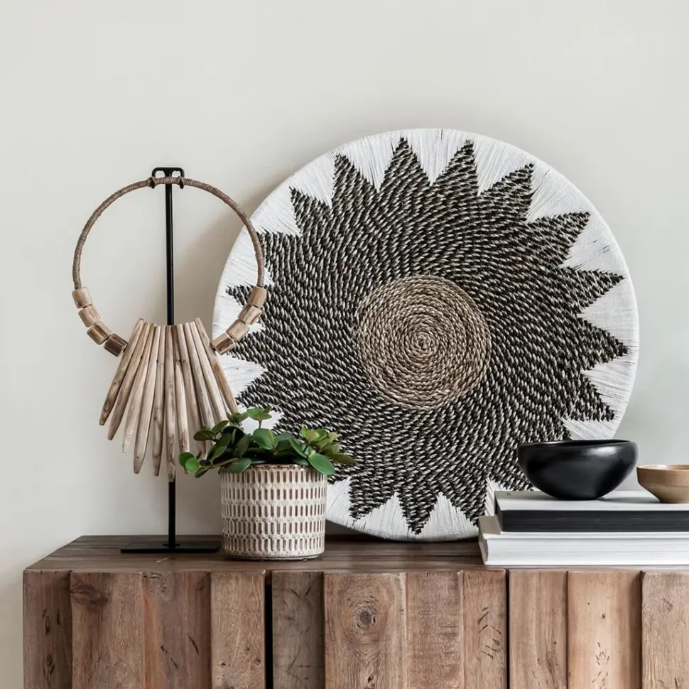 Wandpaneel Star heeft een bohemien uitstraling. Het paneel heeft een afmeting van Ø31×17 cm en is gemaakt van organische materialen.