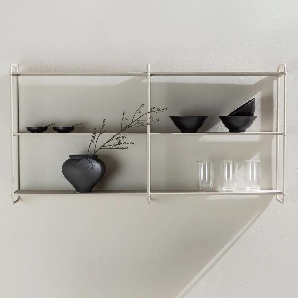 Deze wandplank is gemaakt van beige gepoedercoat ijzer dat naadloos past in verschillende stijlen en huizen. Het klassieke ontwerp is tijdloos en geeft je kamer een elegant tintje. Met drie smalle planken biedt Jaymie een stijlvolle ruimte voor je mooie decoraties. Hier kun je alles ordenen, van boeken tot planten en kaarsen. Houd je ruimte georganiseerd en elegant.