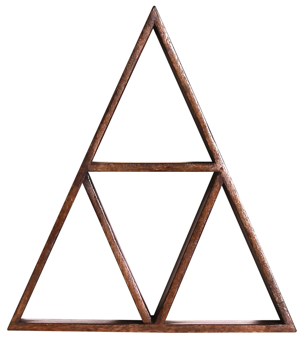 Met deze wandplank kun je je favoriete stukken in stijl presenteren en je muren een heel speciaal tintje geven. Het frame is gemaakt van mangohout. Dit ziet er niet alleen stijlvol uit, het is ook zeer robuust en stabiel. Dankzij de veelzijdigheid kan de plank bijna overal worden gebruikt. Een bijzondere blikvanger is de ongebruikelijke vorm van driehoeken in een driehoek. Het maakt niet uit waar de wandplank wordt geïnstalleerd – het is zeker een blikvanger.