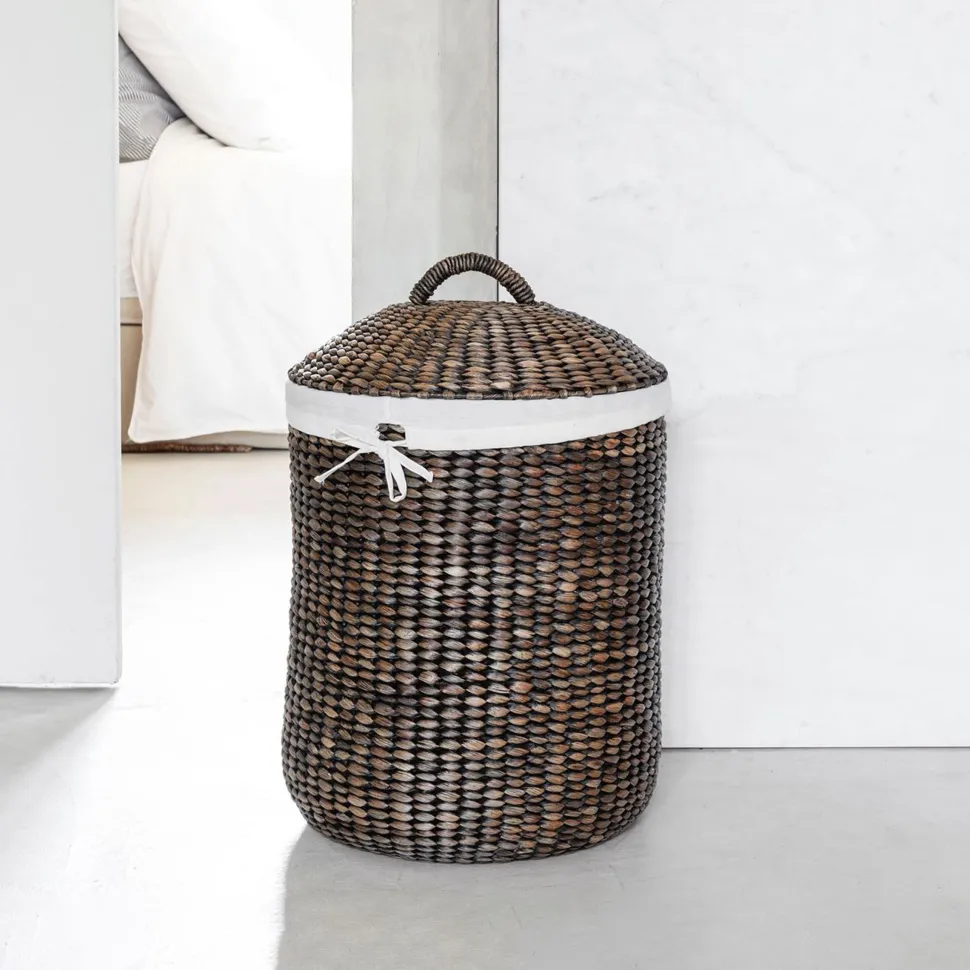 Wasmand Tahiti is gemaakt van waterhyacint, een stevig en duurzaam materiaal. De wasmand is er in twee verschillende kleuren, handig voor de gekleurde en witte was. Tahiti heeft een afmeting van 48/55xØ40 cm en komt inclusief deksel en linnen zak.