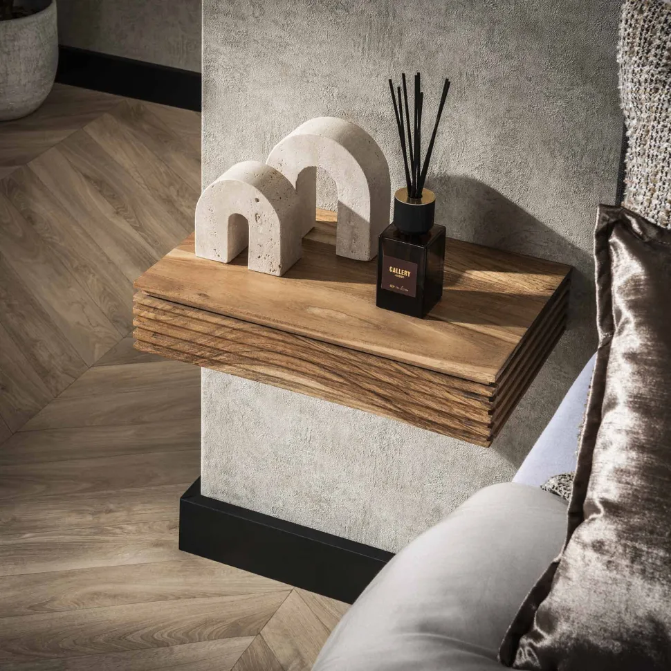Het hangende nachtkastje ‘Tamia’ van LifestyleFurn is een stijlvolle set van 2 stuks, vervaardigd uit massief acaciahout met een warme, natuurlijke afwerking. Elk kastje is voorzien van een lade met een elegant wave patroon, wat een speels accent toevoegt aan het ontwerp. Door het zwevende model oogt de slaapkamer ruimtelijker en blijft de vloer vrij.