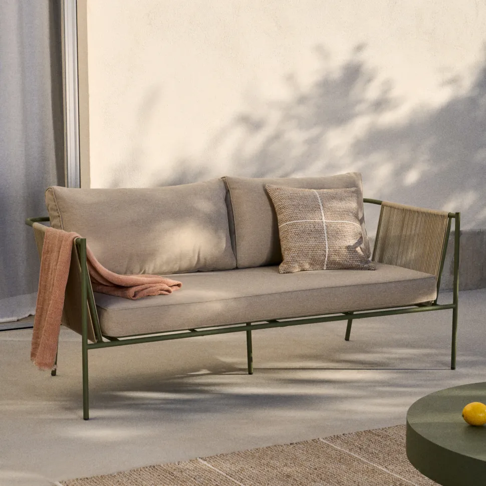 - Waterafstotende behandeling . Het zorgt ervoor dat vloeistoffen van het oppervlak aflopen zonder in het materiaal te dringen, waardoor de stof wordt beschermd. Inclusief kussens met afneembare hoezen van waterafstotende stof. We raden aan deze op te berge