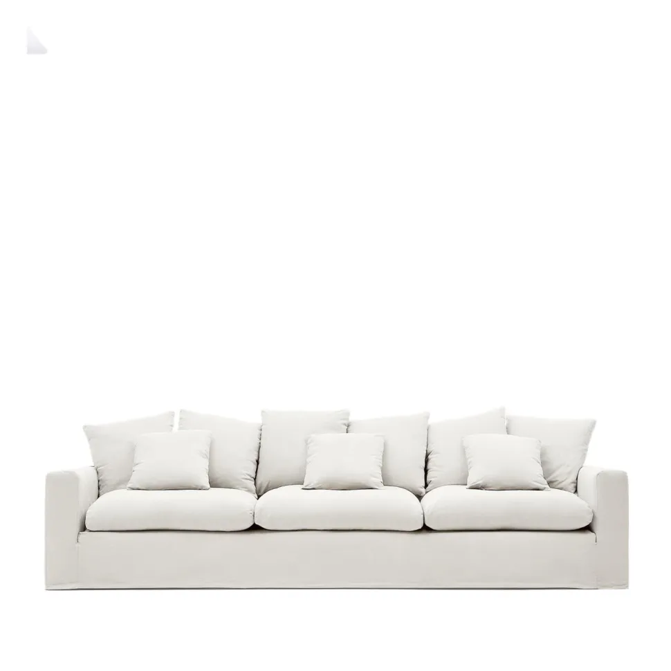 - 4-zitsbank met afneembare hoes van ademend, gestructureerd katoen en linnen met een gesanforiseerde afwerking, waardoor de hoes zijn oorspronkelijke grootte en vorm behoudt.