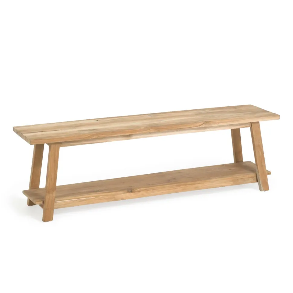- Bankje van massief teakhout.