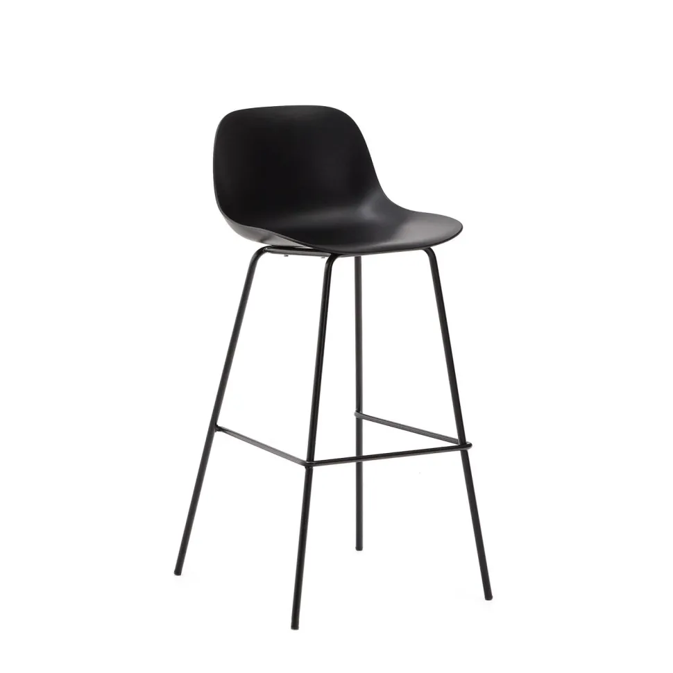 - Kruk met zitting van gerecycled plastic en stalen poten.
