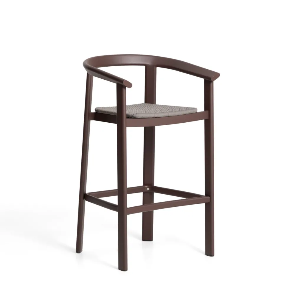 De Erice kruk heeft armleuningen en een structuur van aluminium, een lichtgewicht en duurzaam materiaal. De zitting van handgevlochten touw voegt textuur toe en heeft een UV-bestendige behandeling ondergaan, zodat hij er ook na verloop van tijd goed blijft uitzien. De aluminium structuur is zeer goed bestand tegen roest, corrosie en UV-straling, waardoor hij 100% geschikt is voor buitengebruik. Een functioneel en duurzaam meubel, ontworpen voor zowel binnen- als buitenruimtes.