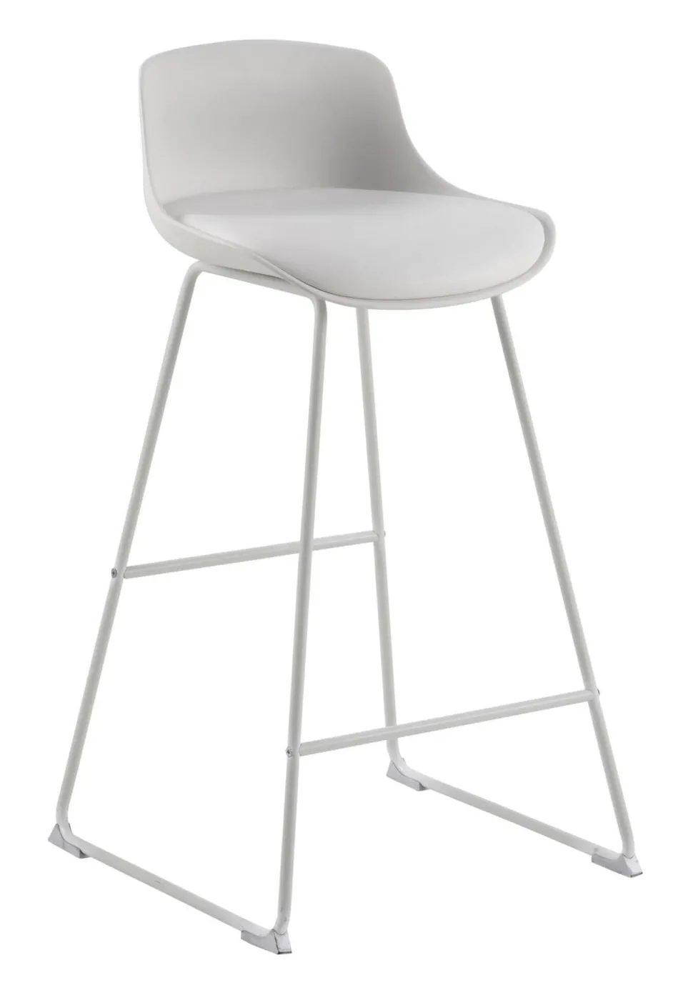 De zeer veelzijdige barkruk met exclusieve ontwerprechten verfraait elke keukenbar of kookeiland met een moderne uitstraling. Een stevig metalen onderstel en voetensteun zorgen voor stabiliteit. De sledepoten met poedercoating geven de barkruk een lichte uitstraling.