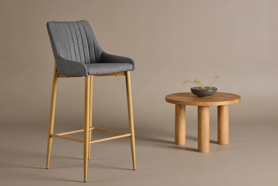 Met een barkruk uit de Quennel serie hoef je geen compromissen te sluiten op het gebied van design en comfort! Het ontwerp is goed doordacht met een volledig aangeklede stoel van gestoffeerd polyester linnen in gespikkeld beige kleur en een smalle pootstandaard van zwart gepoedercoat metaal met geïntegreerde voetensteun voor extra comfort. Lichte montage is vereist.