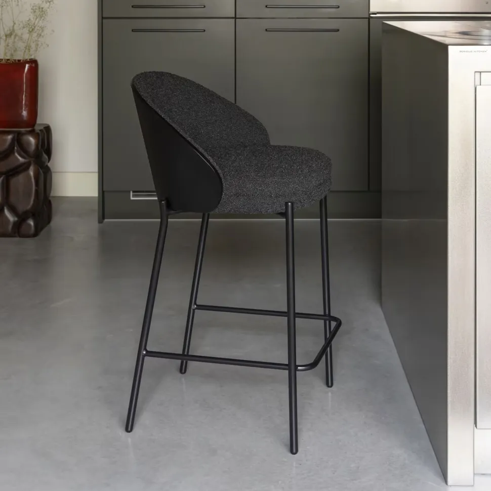 Barkruk Rodin Essenhout en Bouclé, kleur Zwart (zithoogte 65cm)