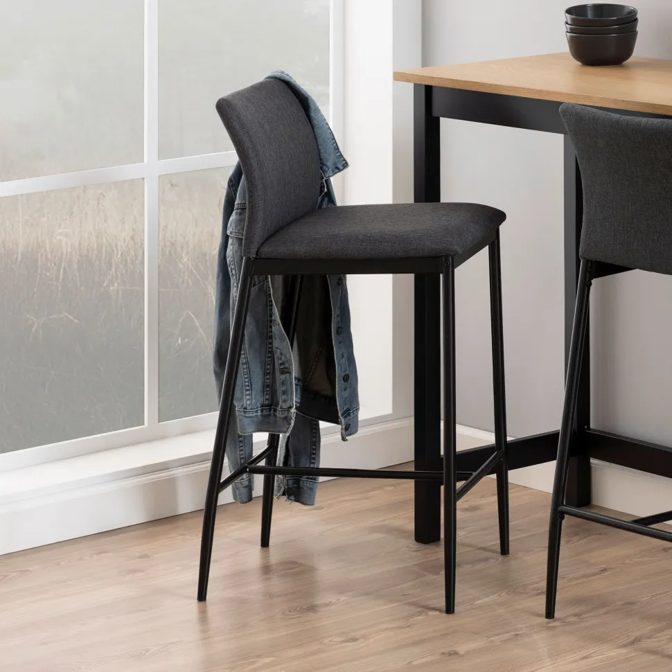 Een minimalistisch ontwerp met strakke lijnen is de belangrijkste eigenschap van deze barkruk. Breng wat strakke verfijning in je keuken of bar en geniet van een maaltijd, drankje of ochtendkrant in stijl en comfort. De gestoffeerde zitting, rugleuning en ondersteunende voetensteun laten je comfortabel zitten, zodat je niet hoeft te haasten.