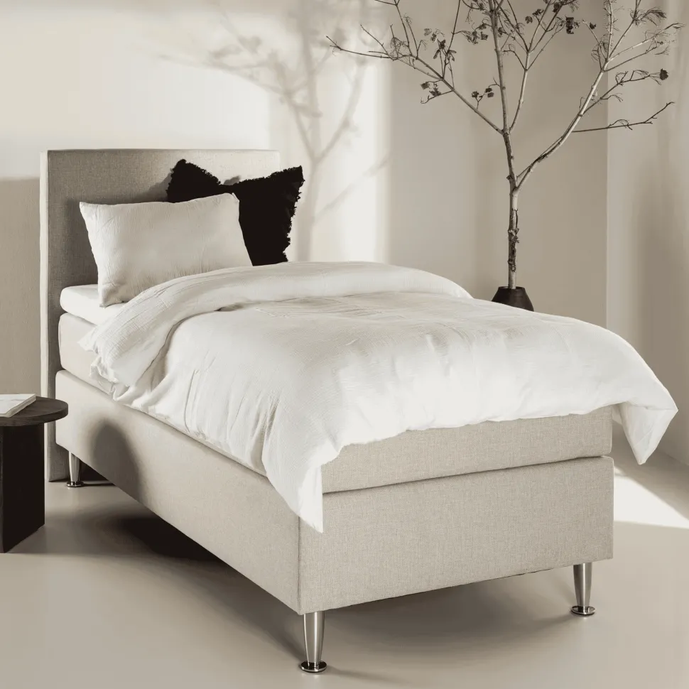 Ontdek het eindeloze gevoel van rust en gezelligheid met het Jacquise bed in een prachtige beige tint. Jacquise heeft stevigheid; het is stevig en biedt je de juiste balans tussen ondersteuning en comfort. Met zijn perfecte afmetingen van 90×200 cm is het ideaal voor een eenpersoonsbed dat je natuurlijke slaappatroon volgt.
