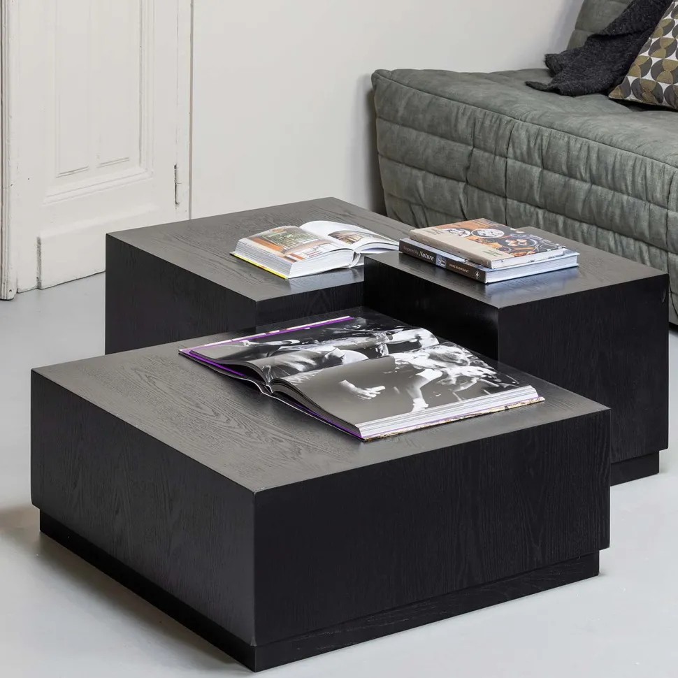 De Pim bijzettafels worden in één pakket, volledig gemonteerd geleverd. De tafels zijn in elkaar gestapeld om ruimte in de verpakking te besparen. Plaats voor het beschermen van harde vloeren viltglijders aan de onderzijde.