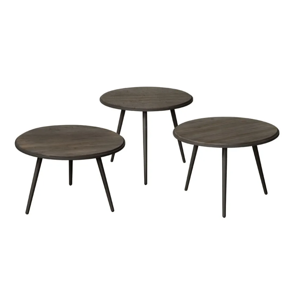 Artikelnummer: N/B Categorieën: Bijzettafels, Bijzettafels Set, Ronde Bijzettafel, Tafels Tags: RENEW, Weather Grey, Wine, Zwart Merk: RENEW