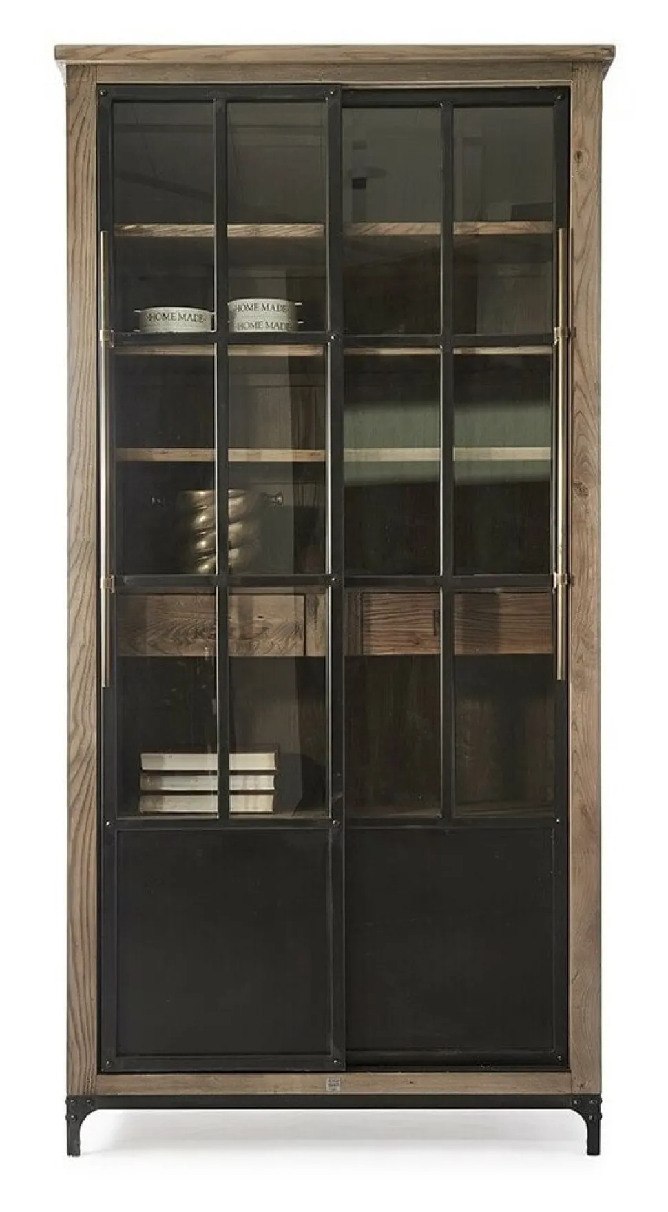 De Hoxton Cabinet is industrieel doch warm door de combinatie van gerecycled essenhout en metaal. De metalen deuren schuiven open met de stoere stangen aan de zijkanten van de deuren. De vele planken in de kast bieden veel opbergruimte, in het midden van de kast ook twee lades voor al uw los slingerende items.