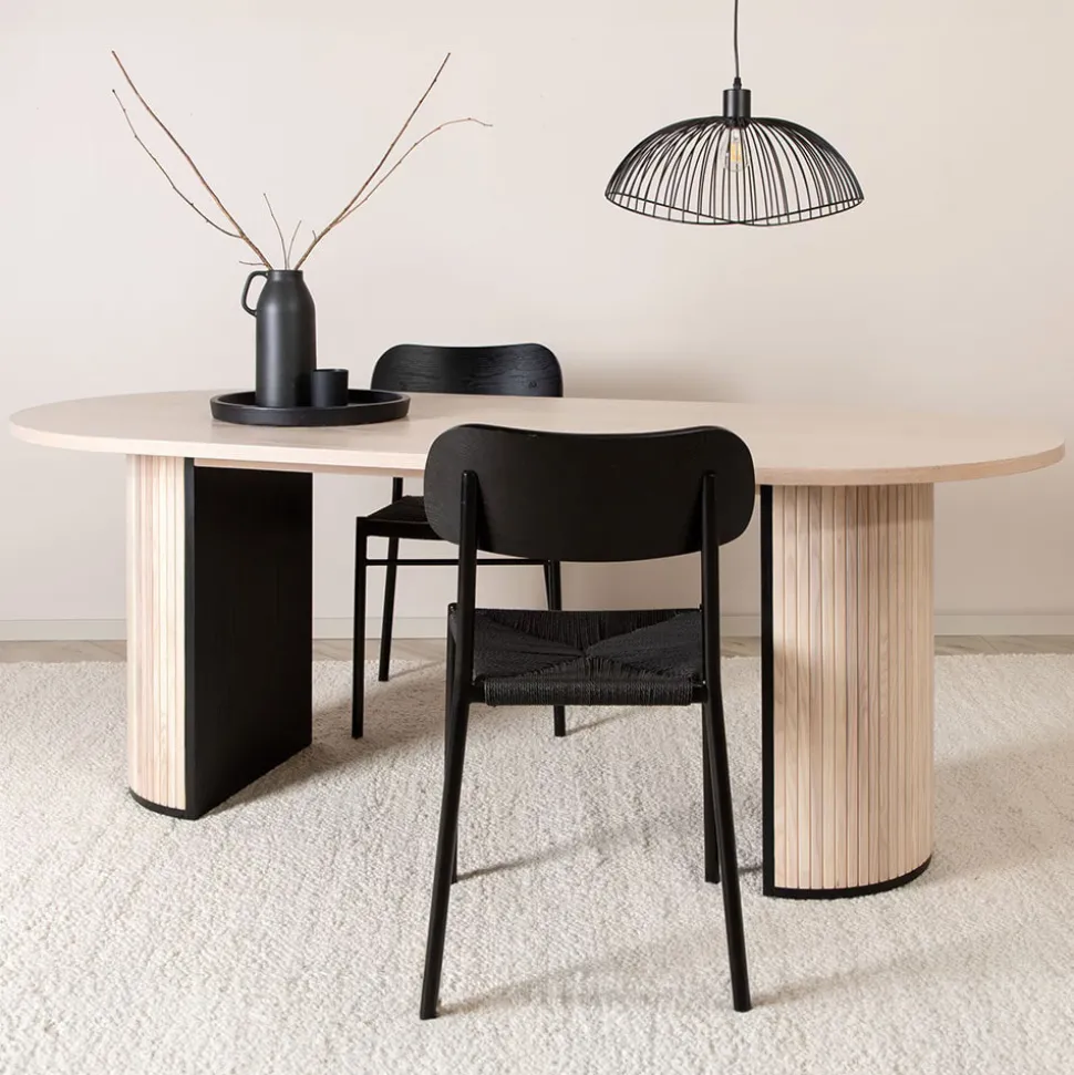 Fionna creëert een stijlvolle blikvanger die indruk maakt! Deze ovale eettafel in de trendy walnootkleur heeft een modern ontwerp met een MDF tafelblad en een robuust frame in geribbeld design dat een stabiele indruk maakt. Verhoog het interieurontwerp in de woonkamer en nodig uit tot vele gezellige maaltijden in het verschiet!