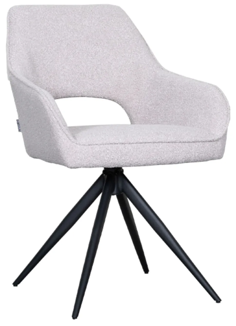 Eetkamerstoel Finley heeft niet alleen een fraai uiterlijk, maar is ook zeer functioneel. Dankzij de stevige, zwarte metalen poten met een unieke kruisvorm biedt de stoel stabiliteit en een moderne touch. De bouclé-stof is duurzaam en slijtvast, wat de stoel ideaal maakt voor dagelijks gebruik. Bovendien is de draaifunctie van de stoel een handige toevoeging, wat zorgt voor extra flexibiliteit en gemak tijdens het tafelen.