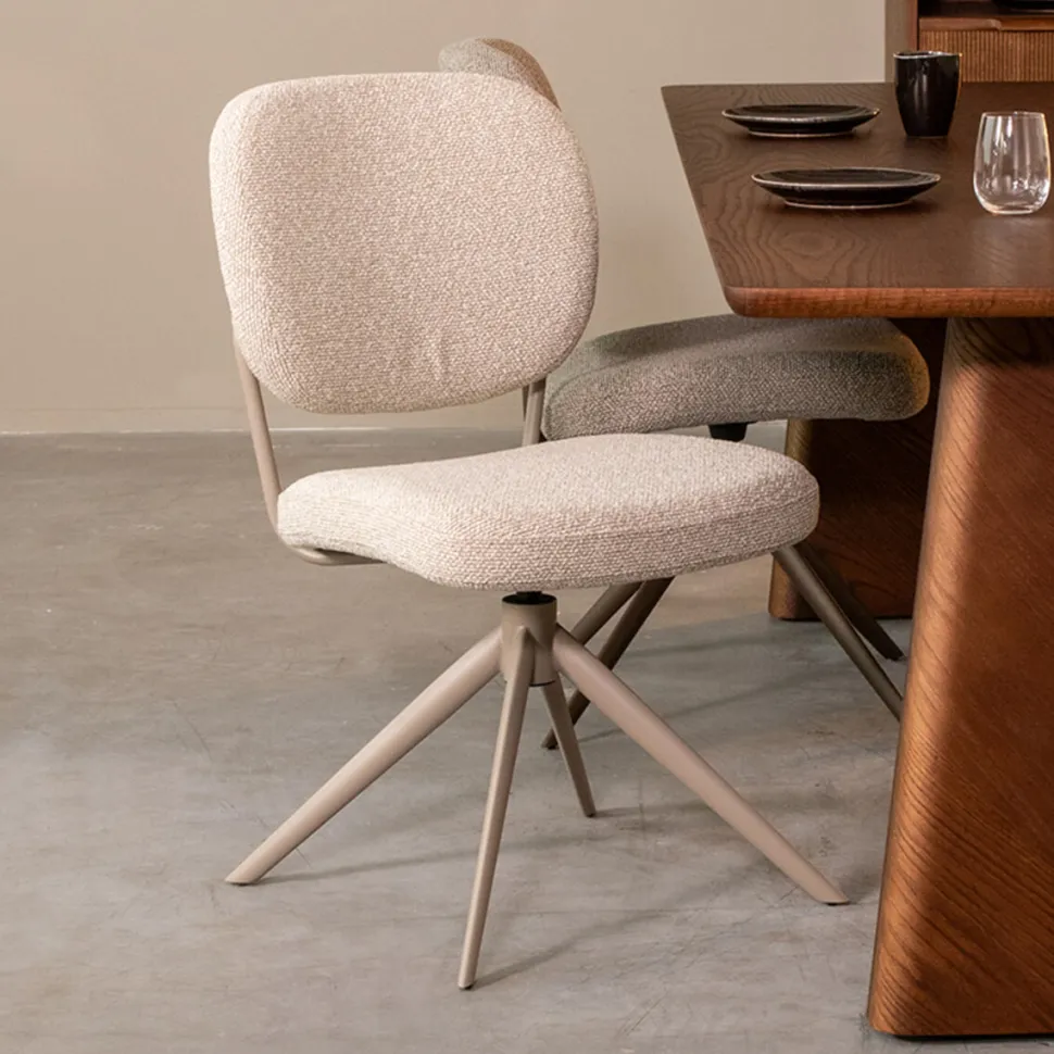 Dankzij zijn neutrale kleur en tijdloze ontwerp is de Geneva eetkamerstoel eenvoudig te combineren met verschillende tafelstijlen en interieurs. Plaats de stoel rondom een houten eettafel voor een warme, natuurlijke uitstraling of combineer hem met andere stoffen en materialen, zoals leer of velvet, voor een stijlvolle en harmonieuze look.