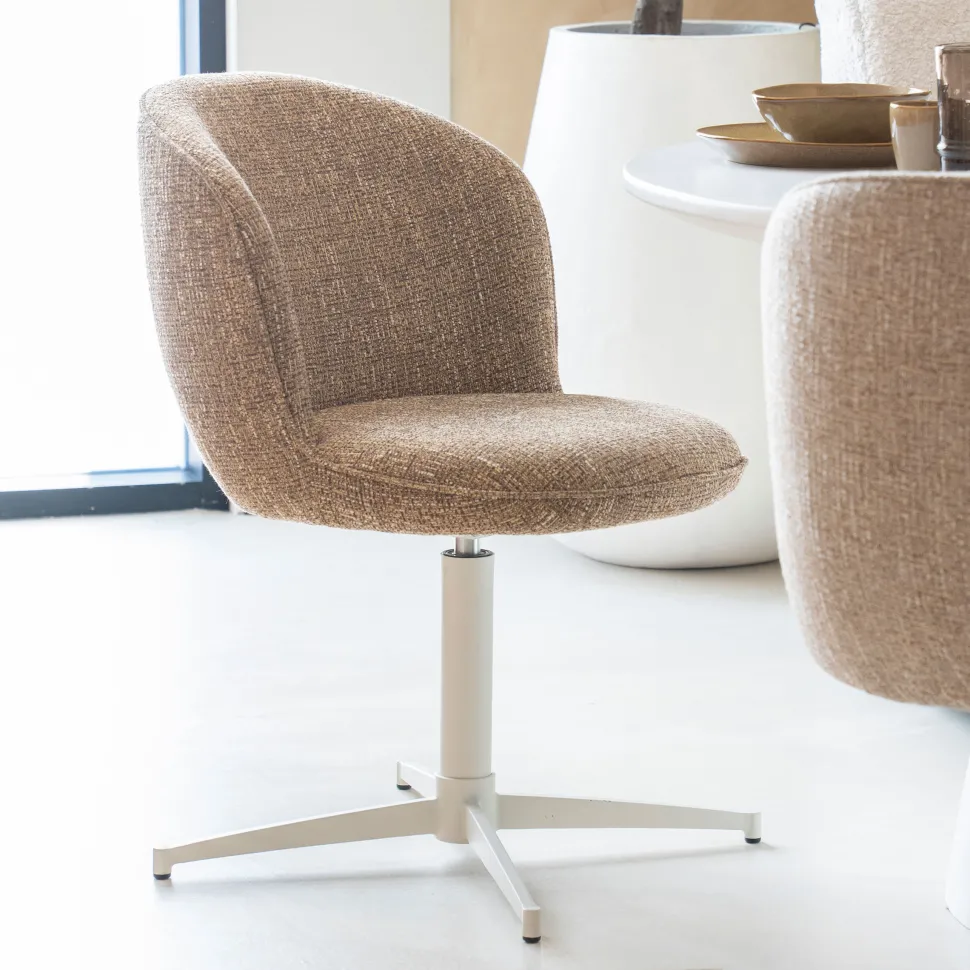Eetkamerstoel op wielen Thandie Hoven stof en bruin onderstel