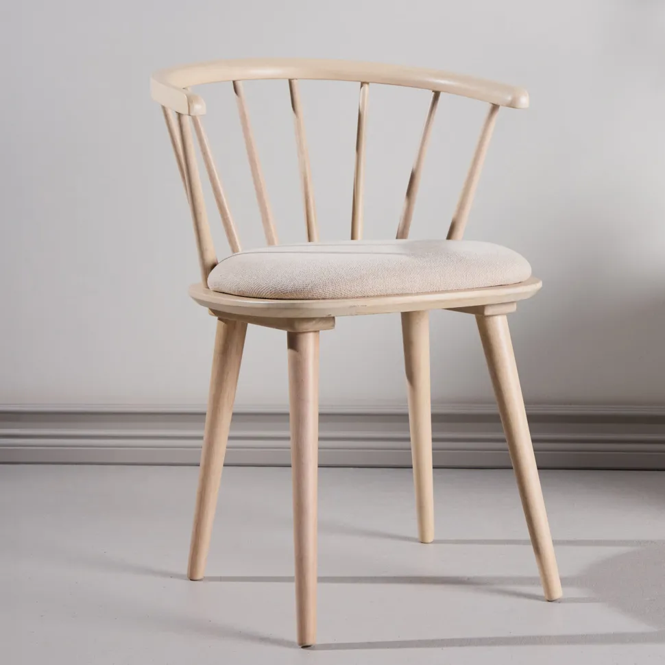 Zeg hallo tegen Araseli – een strakke eetkamerstoel van licht hout.