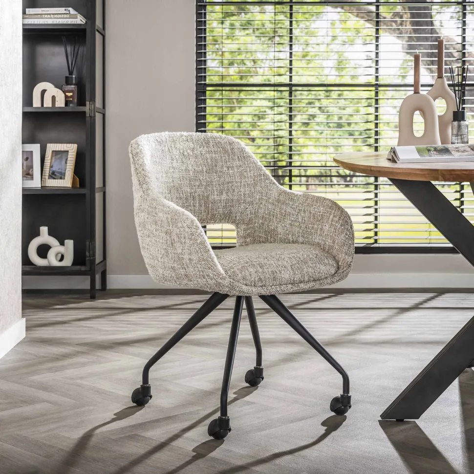 Eetkamerstoel op wielen Thandie Hoven stof en zwart onderstel
