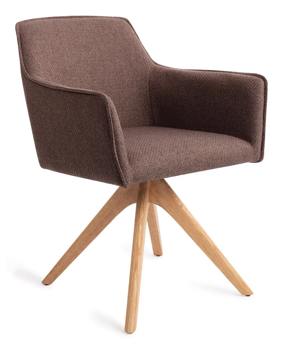 De zitting van de Hofu stoel is bekleed met hoogwaardige polyester stof in een grove weving en is verkrijgbaar in zes prachtige kleurtinten: Potters Clay (bruin), Wild Walnut (lichtbeige), Checkers Charme (lichtgrijs), French Toast (donkerbeige), Enoki (crème) en Violet Daisy (paars). De grove weving voegt diepte en textuur toe aan deze kleuren. Elke kleur is zorgvuldig geselecteerd om je te helpen een harmonieuze sfeer te creëren die jouw interieurstijl weerspiegelt.