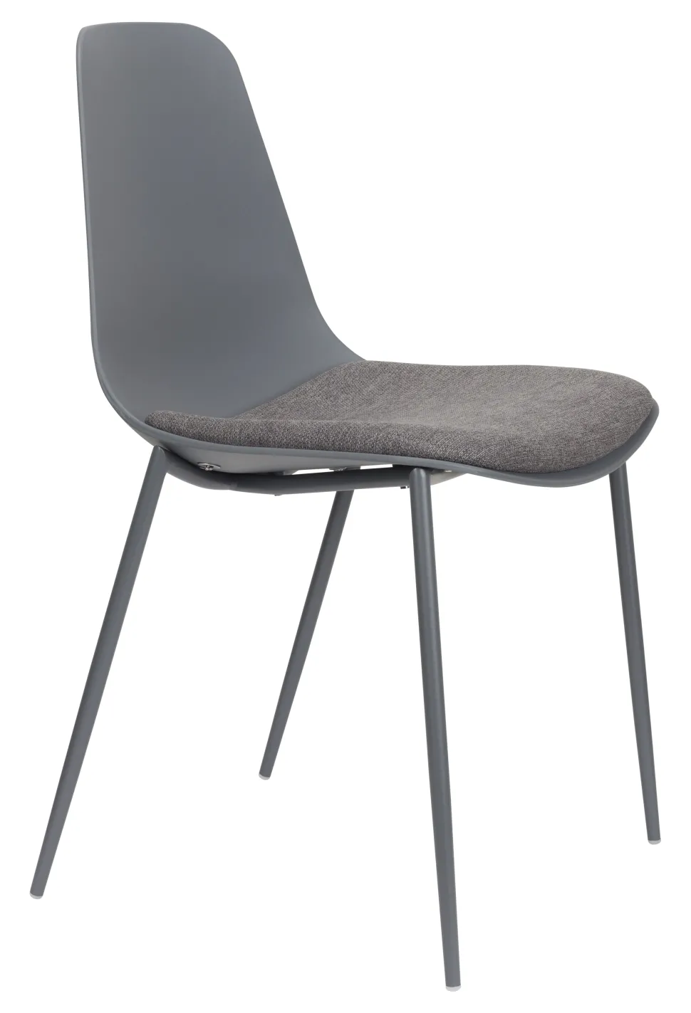 | Materiaal: | Kunststof rugleuning, stoffen zitting en metalen poten |