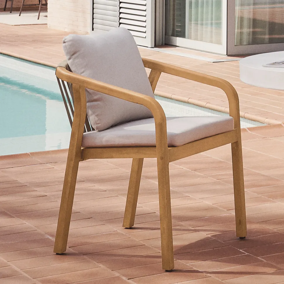 - Stoel van massief eucalyptushout en handgevlochten touw.