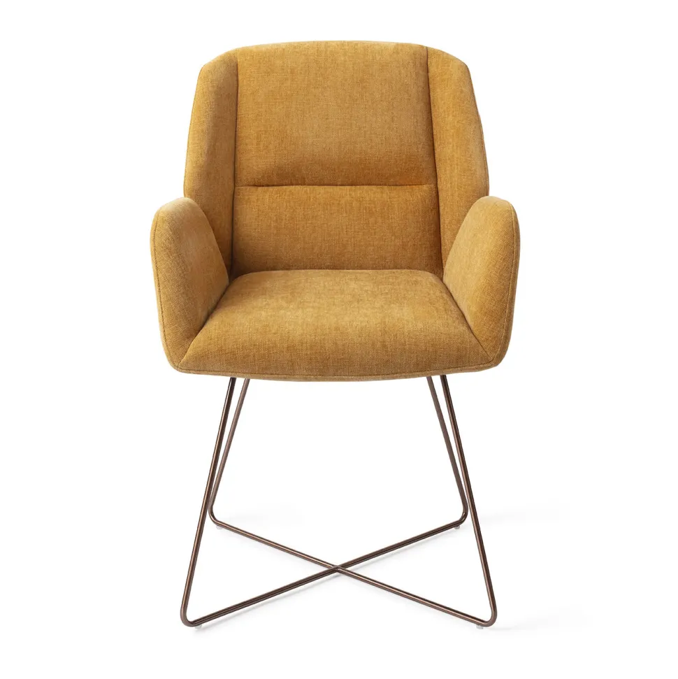 Hallo. Myoko. Onze grande dame onder de eetkamerstoelen, biedt comfort en oogt zelfs comfortabel. Dat kan niet mis. De royale zitting en stevige armleuningen zorgen voor optimaal zitgenot. Neem plaats!