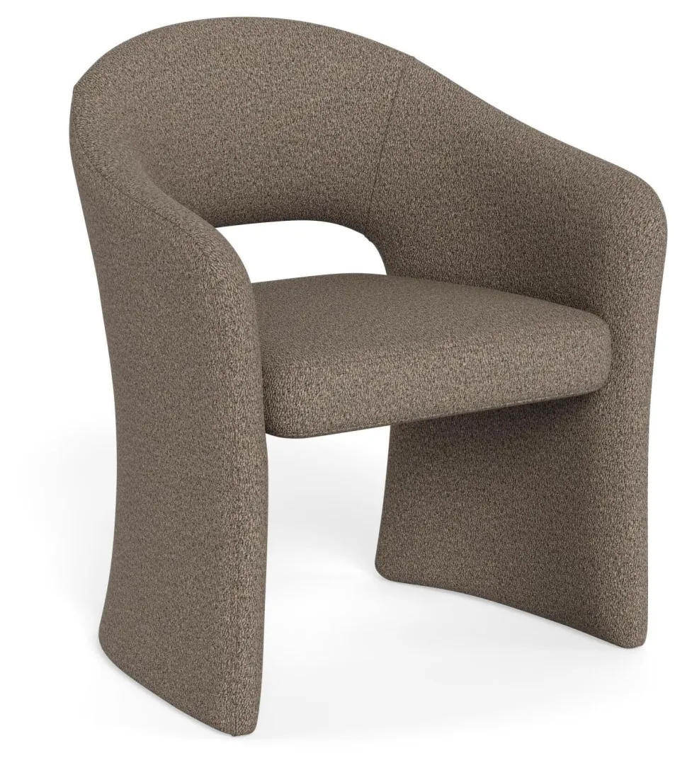Ervaar comfort en stijl met deze moderne eetkamerstoel, met zachte crèmekleurige bouclé-achtige bekleding die zich zachtjes om de zitting wikkelt. Ontworpen met armleuningen, zodat je je armen kunt laten rusten voor een betere ervaring. De uitnodigende textuur en het slanke silhouet brengen warmte en verfijning in elke eetkamer en maken van elke maaltijd een elegante aangelegenheid.