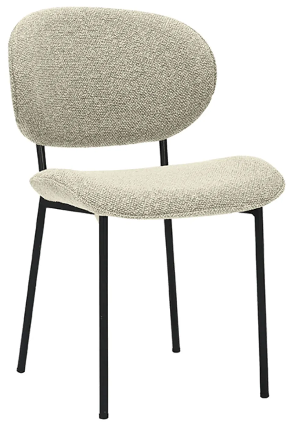 Eetkamerstoel Senn van LABEL51 geeft een minimalistische en eigentijdse toevoeging aan elke eetkamer. De stoel is uitgevoerd in de luxe stof royal bouclé in de kleur naturel, wat zorgt voor een zachte, comfortabele zitervaring en een warme, natuurlijke uitstraling. Het strakke en eenvoudige ontwerp, gecombineerd met de organisch gevormde zitting en rugleuning, geeft de stoel een subtiele elegantie. De slanke, zwarte metalen poten vormen een stijlvol contrast met de lichte naturel bekleding, wat bijdraagt aan het moderne en minimalistische karakter van de stoel.