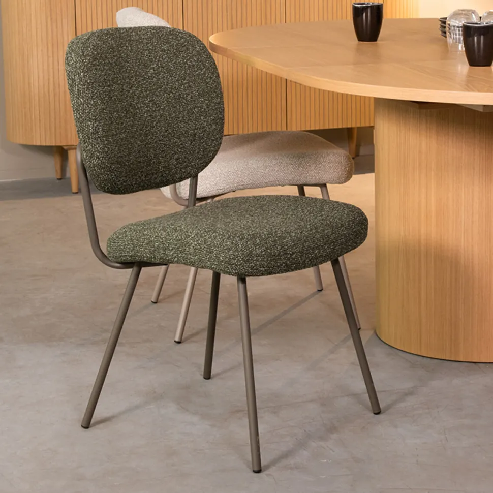 Eetkamerstoel Singapore van LABEL51 is het armloze broertje van stoel Lausanne. Een chique stoel voorzien van elegante rechte poten en gestoffeerd in het populaire Naturel Royal Boucle. Door zijn luchtige design en strakke lijnen, past deze stoel perfect in ieder modern of Scandinavisch interieur.
