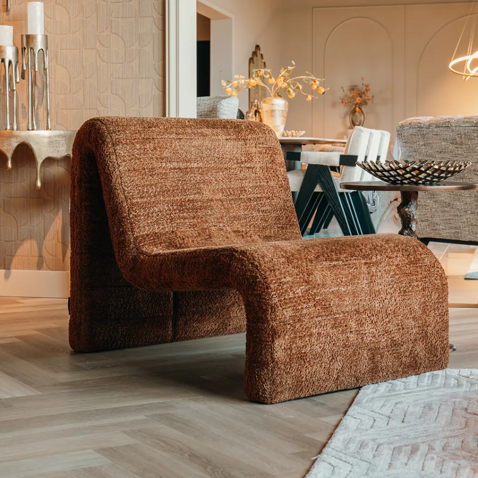 Een fauteuil die net even anders is. Dat omschrijft fauteuil ‘Kelly’ uit de collectie van Richmond perfect. Deze stoel is ontworpen uit één stuk en heeft een bijzondere vorm. De fauteuil is helemaal bekleed met een zachte chenille stof.