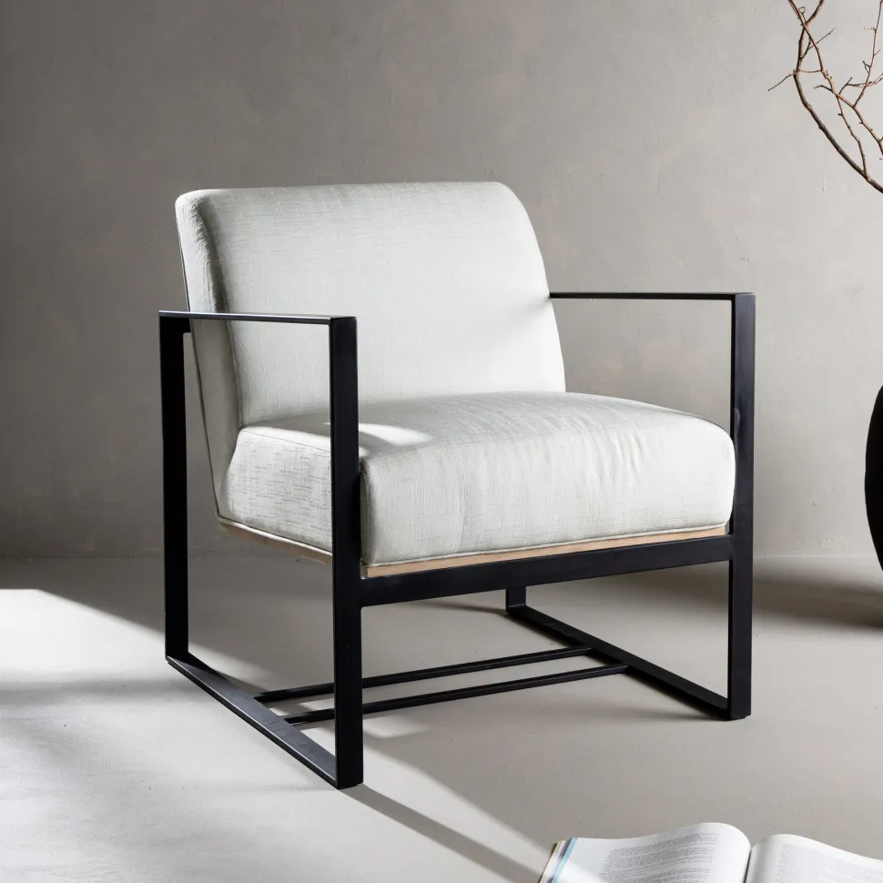 Roxana – een stijlicoon dat het interieur naar een hoger niveau tilt! Deze stijlvolle fauteuil heeft een ontwerp dat helemaal aansluit bij de trends en creëert al snel een modebewuste sfeer in je huis. De zitting is uitgevoerd in gebroken wit met een comfortabele zitdiepte en zachte vulling die een uitnodigende indruk geeft aan het meubel. De romp is minimalistisch in rechte Scandinavische vormen, gemaakt van zwart metaal. Plaats hem solitair in de leeshoek of naast de bankgroep om wat extra ruimte te creëren voor je geliefden!