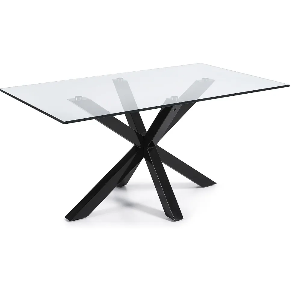 Tafel met stalen onderstel epoxy-gelakt en blad van gehard glas.