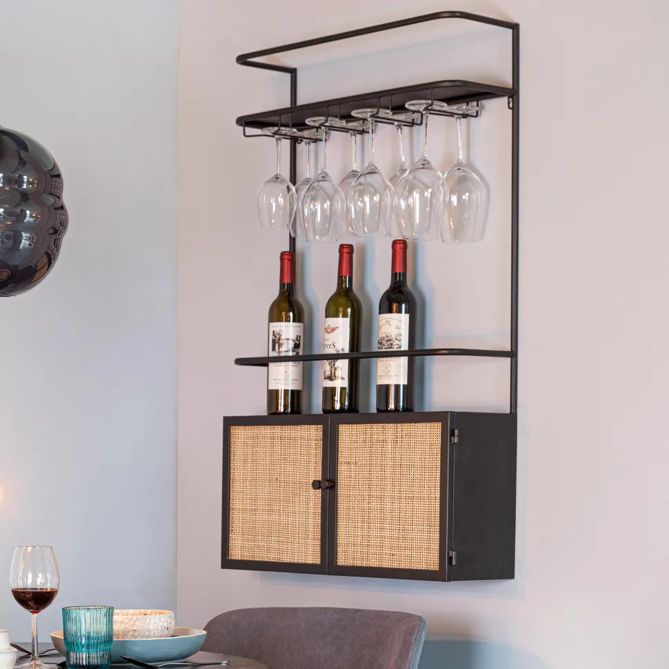 | Materiaal: | MDF met rotan deuren en gepoedercoat ijzeren frame |