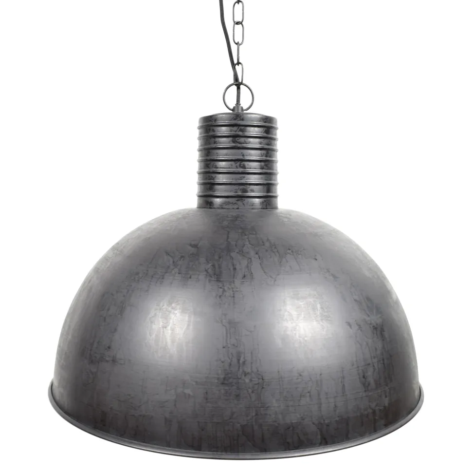 De Dome hanglampen kenmerken zich door het eigentijdse stoere ontwerp. Aan de kap zit een robuuste ketting, daarnaast zit er aan deze lamp een gestoffeerd snoer, dit geeft de lamp een exclusieve uitstraling. De lamp is leverbaar in; rough black, stone grey en antique zink.