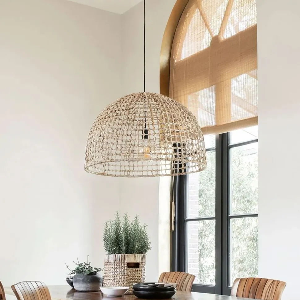 Hanglamp La Savina van het merk MUST Living is gemaakt van bananenblad. Dit bijzondere materiaal is verwerkt in een mooi patroon, waardoor een mooi lichtspel ontstaat. De lamp heeft een afmeting van 45xØ72 cm.