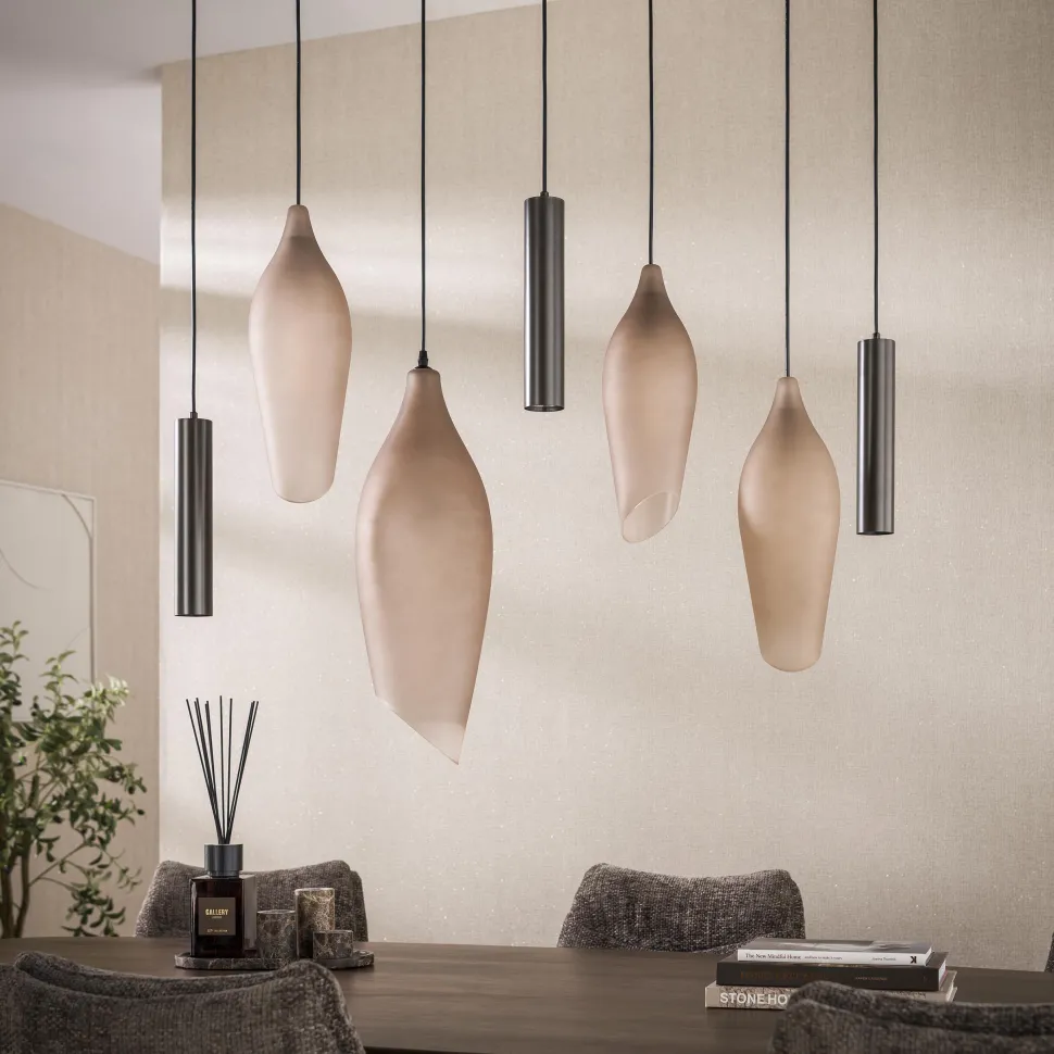 Hanglamp Luvia Frosted Glas, 4+3-lamps, kleur Sienna Bruin