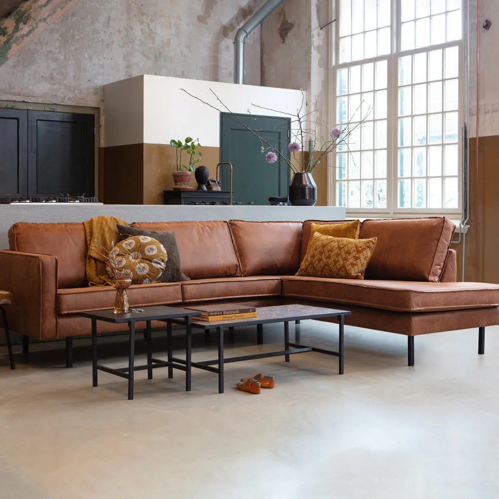 De Rodeo hoekbank wordt in twee pakketten geleverd. De poten zijn eenvoudig te bevestigen aan de hand van de bijgeleverde montagehandleiding. Plaats voor het beschermen van harde vloeren viltglijders aan de onderzijde van de poten.