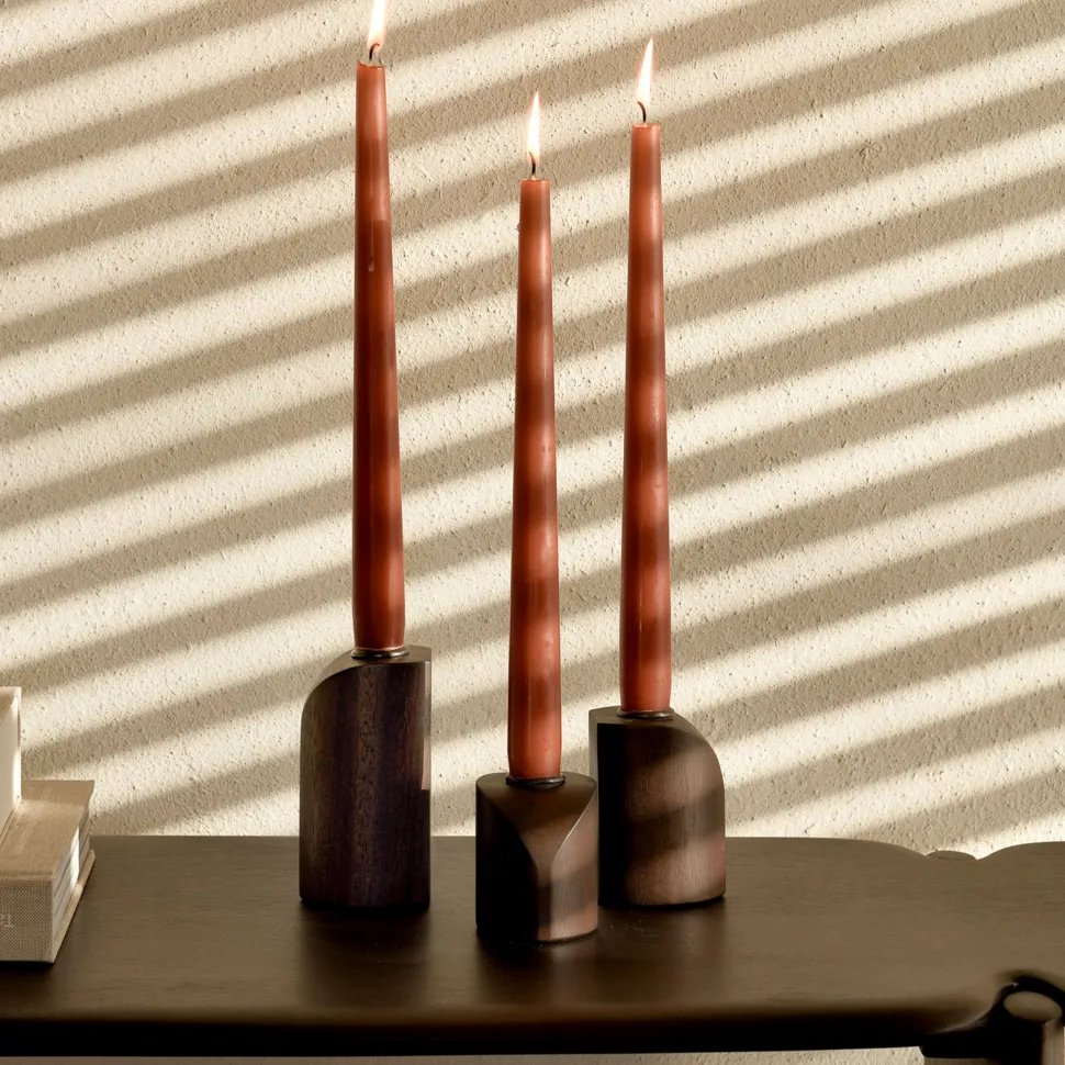 De PI collectie eert het ontwerp van de natuur, door de kracht, de rondingen en lijnen te behouden, zoals de natuur het bedoeld heeft. Interessante vormen worden ontdekt in deze slanke en stijlvolle, gepolijste doch onvolmaakte afwerking. Elke PI kandelaar wordt met de hand afgewerkt om ervoor te zorgen dat het individuele karakter van het hout wordt gerespecteerd. Ontworpen door Alain van Havre.