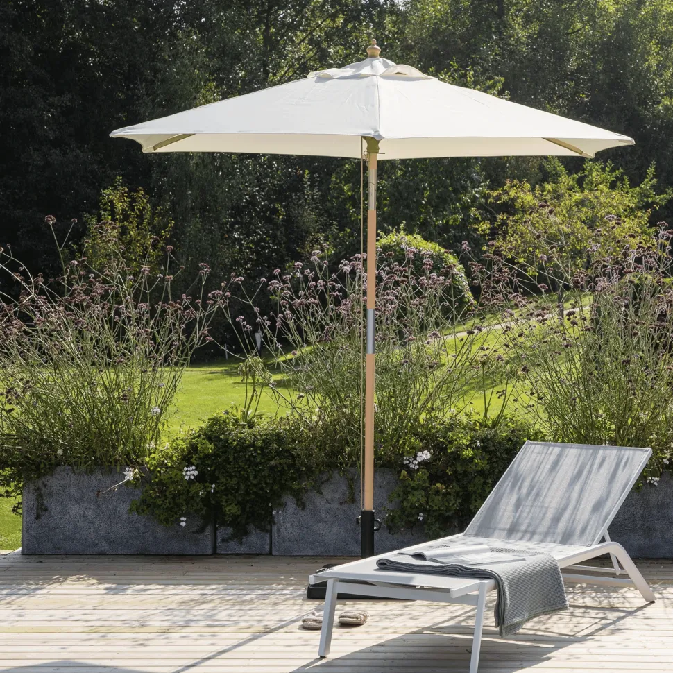 De parasol Eliu is er voor jou als je even weg wilt van de zon! Een stijlvol ontwerp met een witte stof die in de meeste patio’s past. De parasol kan worden gekanteld om hem aan je behoeften aan te passen.