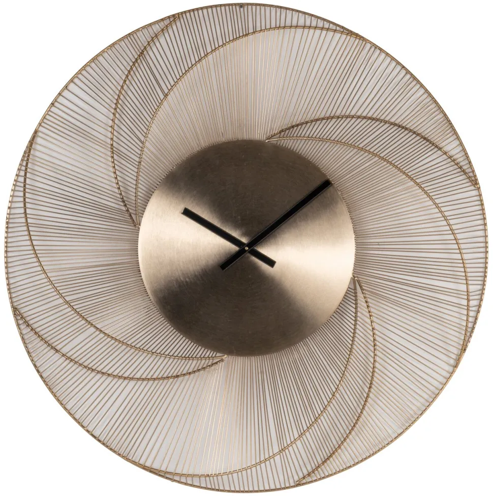 Klok Denver heeft een ronde vorm met een gouden lijst en subtiele zonnestraaltextuur. Een stijlvolle wandklok die functie en decoratieve waarde combineert.