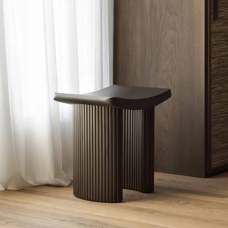 Het krukje Roller Max van Ethnicraft komt uit de premium collectie en is vervaardigd uit hoogwaardig, gevernist mahoniehout. De rijke, donkerbruine afwerking benadrukt de natuurlijke diepte van het hout en geeft het krukje een luxe uitstraling. De lichtgebogen zitting zorgt voor extra comfort, terwijl het onderstel met latjesstructuur een verfijnd, architectonisch detail toevoegt.