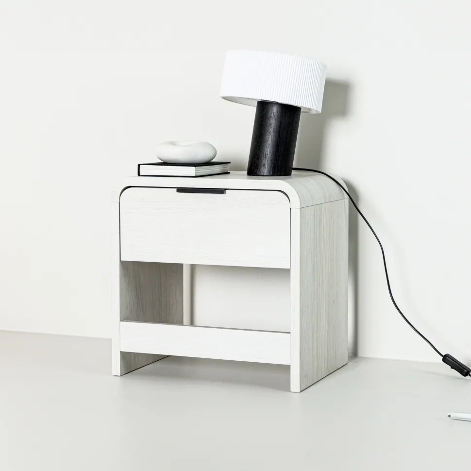 Het Hoyt bijzettafeltje biedt niet alleen een oppervlak om je spullen op te leggen, maar heeft ook een lade waarin je je dagelijkse spullen georganiseerd kunt opbergen. Dit maakt het een ideale oplossing om dingen opgeruimd te houden en rommel in je slaapkamer of woonkamer te verminderen.