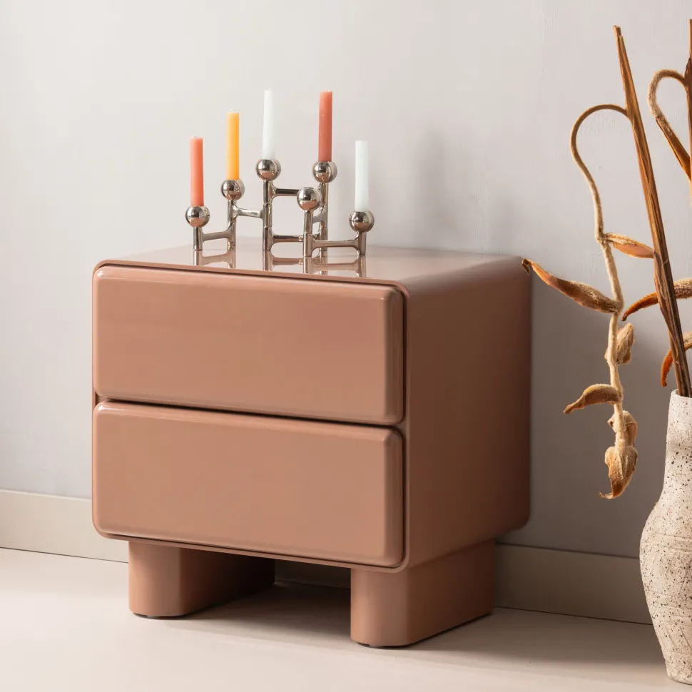De Lustra ladekast in oudroze brengt een rustige en toegankelijke sfeer in je slaapkamer. De afgeronde vormen zorgen voor een vriendelijk karakter, terwijl de hoogglans afwerking het ontwerp net wat extra’s geeft. Door het compacte formaat past deze kast ook in kleinere ruimtes, zonder dat je hoeft in te leveren op opbergruimte. De oudroze kleur voegt een eigentijdse touch toe aan je interieur en combineert goed met verschillende kleuren en stijlen. Perfect als nachtkastje naast je bed of als kleine ladekast in de hal.